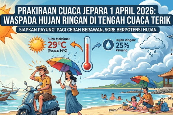 Prakiraan Cuaca Jepara 1 April 2026: Waspada Hujan Ringan di Tengah Cuaca Terik