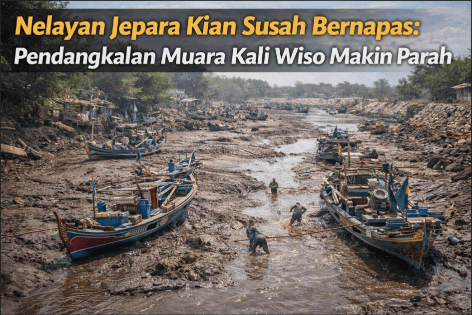 JEPARA | MATAMERDEKA.COM – Beban nelayan di Kabupaten Jepara semakin menghimpit. Selain faktor cuaca dan fluktuasi harga ikan, kondisi Muara Kali Wiso yang kian dangkal kini menjadi rintangan utama bagi masyarakat pesisir Desa Ujungbatu dan sekitarnya. Hingga akhir Maret 2026, tumpukan sedimen lumpur di mulut muara dilaporkan semakin parah, mengancam kelancaran arus logistik perikanan lokal.