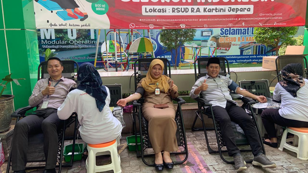 JEPARA | MATAMERDEKA.COM Dalam rangka memperingati Hari Ulang Tahun Asosiasi Rumah Sakit Daerah (ARSADA) ke-25, RSUD R.A. Kartini Jepara turut ambil bagian dalam kegiatan donor darah serentak menuju rekor MURI, Senin (3/11/2025).