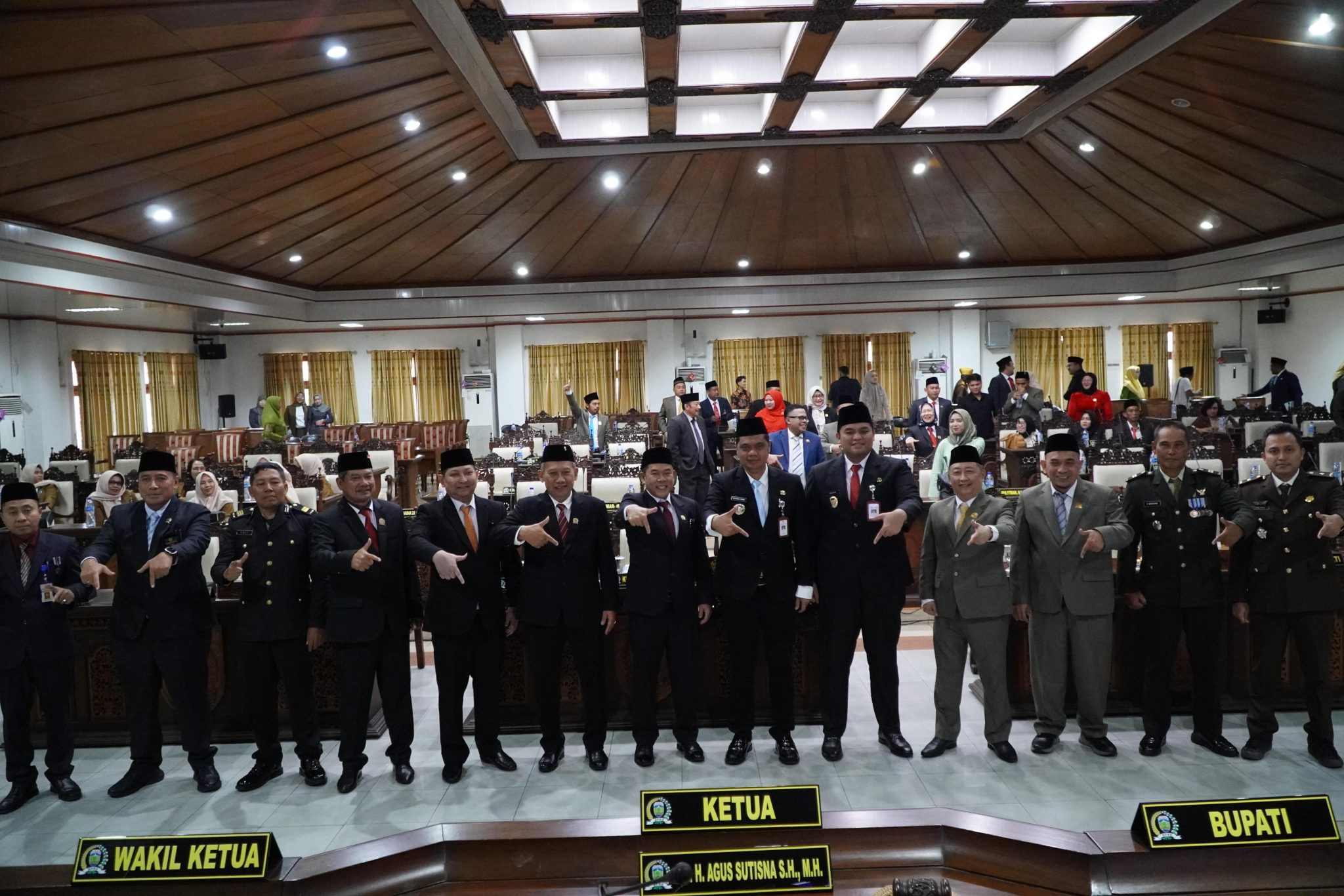 Agus Sutisna duduk di kursi pimpinan bersama para Wakil Ketua DPRD, H. Junarso, H. Arizal Wahyu Hidayat, dan H. Pratikno. Hadir di ruang sidang, Bupati Jepara Witiarso Utomo, Wakil Bupati Ibnu Hajar, jajaran Forkopimda, para kepala OPD, tokoh masyarakat, tokoh agama, serta pengurus partai politik.